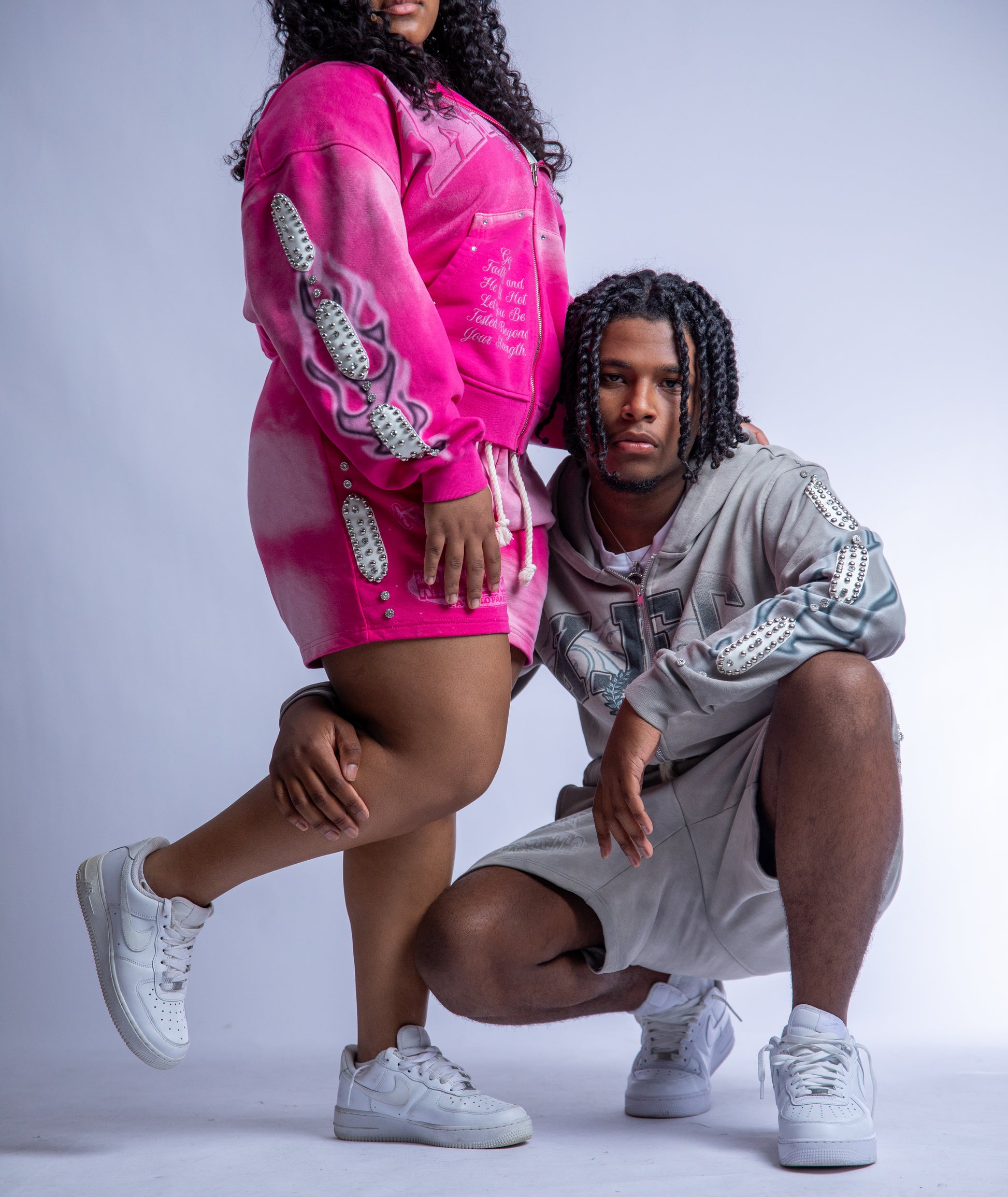 Crafted in a cold-washed gray-on-gray fade, this two-piece set features heavyweight fabric with serious structure and comfort. The full-zip hoodie carries K.E.C. varsity block lettering across the chest with a dark lion emblem at its core — a symbol of strength and fearlessness. On the hood, the mission is clear: "Kill Every Critic" stitched in elegant script, setting the tone for rebellion with precision.